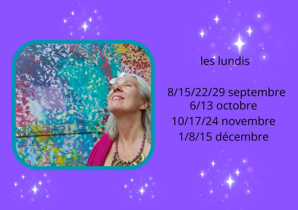 Je suis enthousiaste à l’idée de partager avec vous ce nouveau cycle, véritable odyssée poétique, vibratoire, métaphorique et créative, sur le thème fascinant des couleurs — outil précieux pour s’explorer soi-même, l’origine du monde, la vie et la beauté de tout ce qui est.
